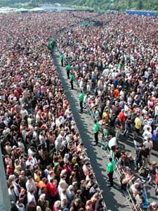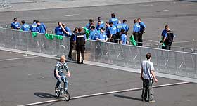Niemand glaubt ernsthaft – so hoffe ich )), daß das Security – Personal nur rumsteht und Leute ohne Paß wegschickt – das ist nämlich nur die Spitze des Eisbergs. Bereits ein Vierteljahr vor Pfingsten beginnen die Vorbereitungen, die Sicherheitskonzepte werden erstellt, ihre Umsetzung geplant und sämtliche Eventualitäten durchgedacht, um während des Festivals möglichst auf alles vorbereitet sein zu können. Auch müssen regelmäßig Besprechungen mit der Festivalleitung durchgeführt werden, damit jede Aktion und jede Örtlichkeit abgesichert werden kann. |