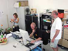 Durch den engen Terminplan ist er angewiesen auf die Zuarbeit des Production-Assistant, an der Alterna – Stage ist das Bernd Wohlleben, dem auch noch ein eigener Bericht gewidmet ist. Da der Production-Assistant im Vorfeld Sound- und Light-Specs, die Catering-Anforderungen, Backline-Requirements usw. sichtet, bearbeitet und verteilt, besteht für Mark die Hauptarbeit direkt am Ring, wo er mit einem Team von 10 Personen arbeitet, zuzüglich der beiden Stage-Manager (Alterna- und Talent-Stage). Morgens ab 9:00 ist er auf dem Gelände und muß den gesamten Ablauf koordinieren und steuern. Er ist als Production-Manager Haupt-Ansprechpartner für den kompletten Alterna-Bereich. Da vieles an sein Team delegieren muß, werden hohe Ansprüche an seine Mitarbeiter gestellt, die Zusammenarbeit ist immens wichtig. Aber wie an anderer Stelle schon erwähnt, kann man am Ring von einer regelrechten „Ring-Familie“ sprechen, bei der sich jeder 100% auf den anderen verlassen kann. Sollte doch einmal etwas Hektik aufkommen, hat Mark mit seiner ruhigen Art schnell wieder alles im Griff. Er selbst versteht sich nicht als Chef des Bereichs, sondern als Dienstleister, der versucht, es allen Beteiligten so einfach wie möglich zu machen. |