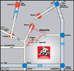 Haupteingang > Caravan C6 > Caravan B9 > Einfahrt C1, C2 > Haupteingang >
